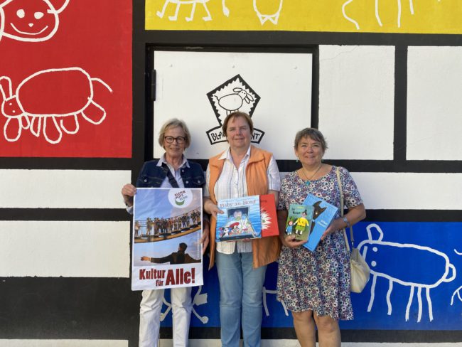 Anke Wiedemann, (Foto r.) KulturbegleiterIn des KulturPott Ruhr und Irene Gerlach (Foto l .) Mitarbeiterin im Vorstand des KulturPott Ruhr e.V., haben die Bücher der Kulturstiftung Selbst.Los! der Teamleiterin Martina Heuer Foto (Foto m.), Teamleitung Förderverein Kinderschutzhaus Essen übergeben. Frau Heuer übernimmt das Verschenken der Bücher an die 2- 12 jährigen Kinder des Kinderschutzhauses. Dort…