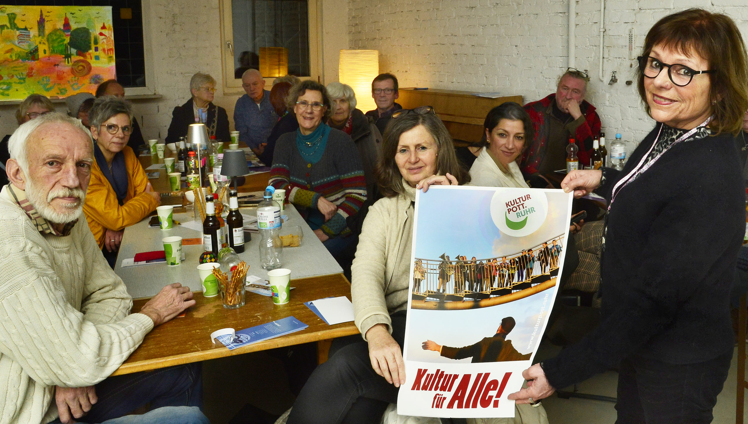 Anschließend stellte Marita Heiliger, Vorsitzende von KulturPott.Ruhr e.V., die Arbeit des Vereins vor. KulturPott.Ruhr ist eine gemeinnützige und ehrenamtlich getragene Organisation und setzt sich ein für die kulturelle Teilhabe für Menschen mit geringem Einkommen, Geflüchtete, Menschen mit Handicap und/oder sozial benachteiligte Jugendliche und Kinder.