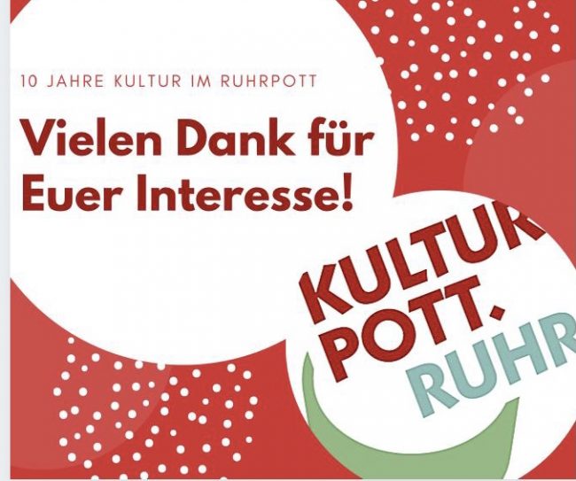 Brigitta Blömeke seit dem 2.5.2012 Mitglied im KulturPott.Ruhr und langjährige super engagierte 1. Vorsitzende hat unseren Verein verlassen. Ein neues Projekt steht in ihrem Fokus, hat neue Leidenschaft entfacht. Mit ihr hört auch unsere langjährige Ehrenamtlerin, Zweigstellenleiterin und stellvertretende Vorsitzende Marie-Cecile Duclercq auf. Ein riesiges Dankeschön an Brigitta Blömeke und Marie-Cecile Duclercq für ihre langjährige…