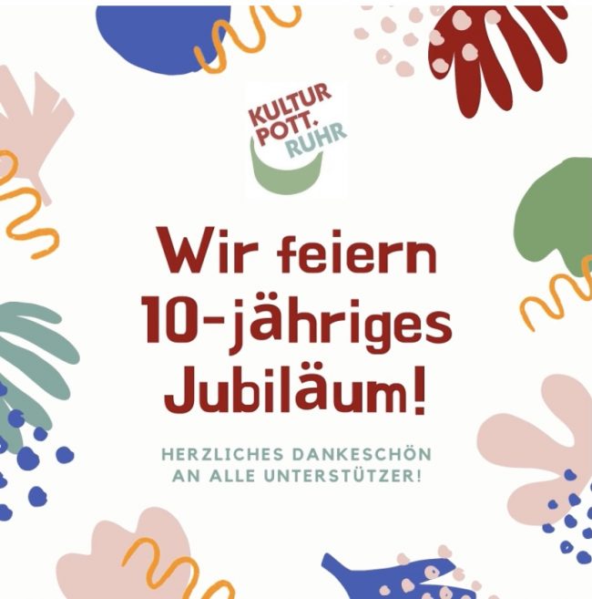Menschenskinder wie die Zeit vergeht!!! Am 24. September 2010 wird die Kulturloge Ruhr / der KulturPott.Ruhr 10 JAHRE alt…. . Ein dickes DANKESCHÖN an Kulturgäste, Ehrenamtler, Mentoren, Veranstalter, Sozialpartner, Unterstützer, Sponsoren….. einfach an alle Mitwirkenden……..