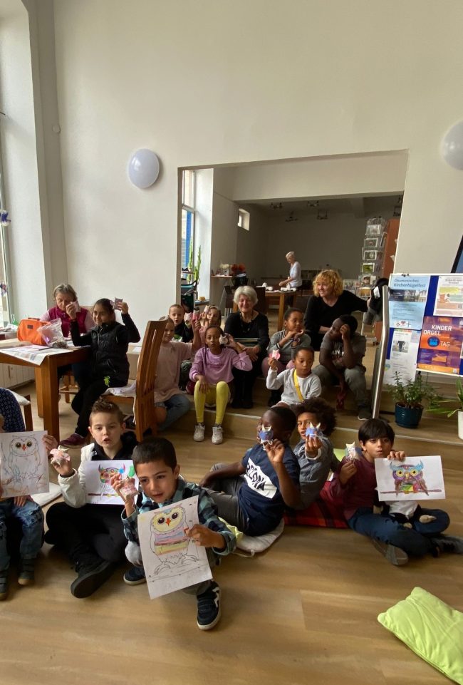 Buch- und Bastelaktion zum Thema Eule in der Zweigstelle des KulturPott.Ruhr in Mülheim. Andrea las die Eulengeschichte vor, Regine hat mit den Kindern Eulen gebastelt oder gemalt. Eines der Mädchen hat den anderen Kindern auch eine Eulengeschichte vorgelesen und das superklasse! Last but not least bekam jedes Kind ein Buch geschenkt. ( Die Stiftung Selbst.Los!…