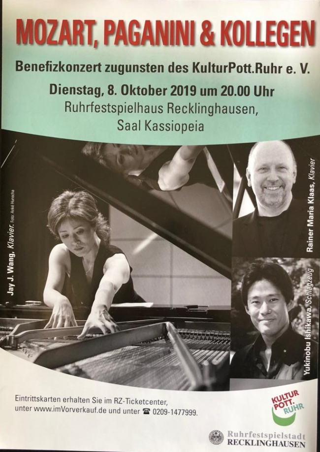 Liebe KulturpottRuhr-Freunde, der bekannte Recklinghäuser Künstler Rainer Klaas (Klavier), seine Ehefrau (Klavier) und ein Perkussionist haben sich bereiterklärt, am 8. Oktober 2019 im Saal Kassiopeia des Ruhrfestspielhauses ein Benefizkonzert zu spielen, dessen Erlös dem Kulturpott.Ruhr voll zugute kommt. Wie ihr wisst, erhält unser Verein keine laufenden Zuschüsse, sondern ist auf Spenden und Zuwendungen angewiesen. Macht…